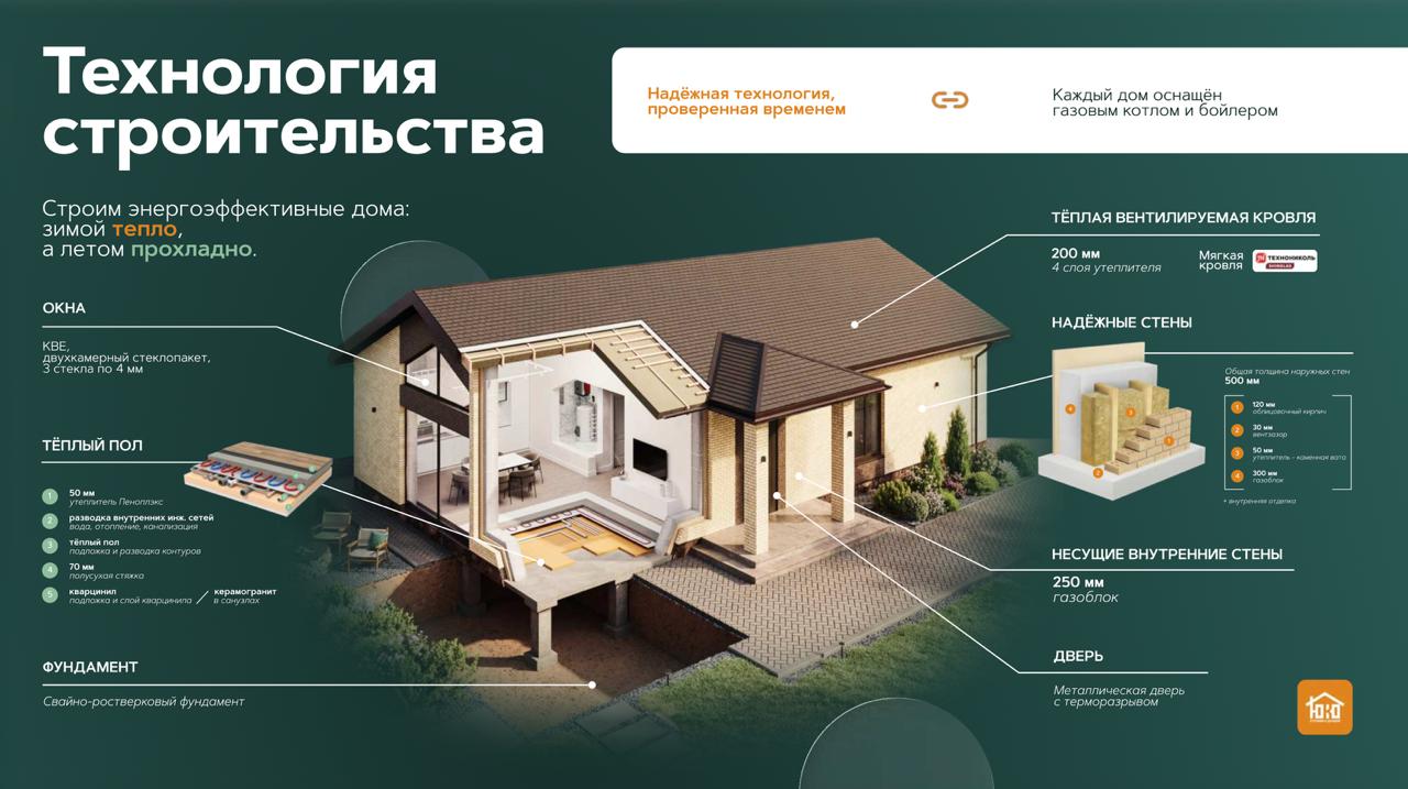 Дома сдаются с чистовым ремонтом и коммуникациями: магистральный газ заведен в дом, 15квт электроэнергии, собственная скважина и септик. Выровненный и очищенный от строительного мусора участок.